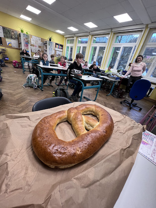 Am 11.11. überraschte uns der Förderverein mit einer leckeren großen Martinsbrezel für jede der 10 Klassen. Die Brezel wurde in der Frühstückspause geteilt, so dass jeder probieren konnte. Die Kinder freuten sich sehr und es blieb kein Stückchen übrig. Eine tolle Aktion des Fördervereins!